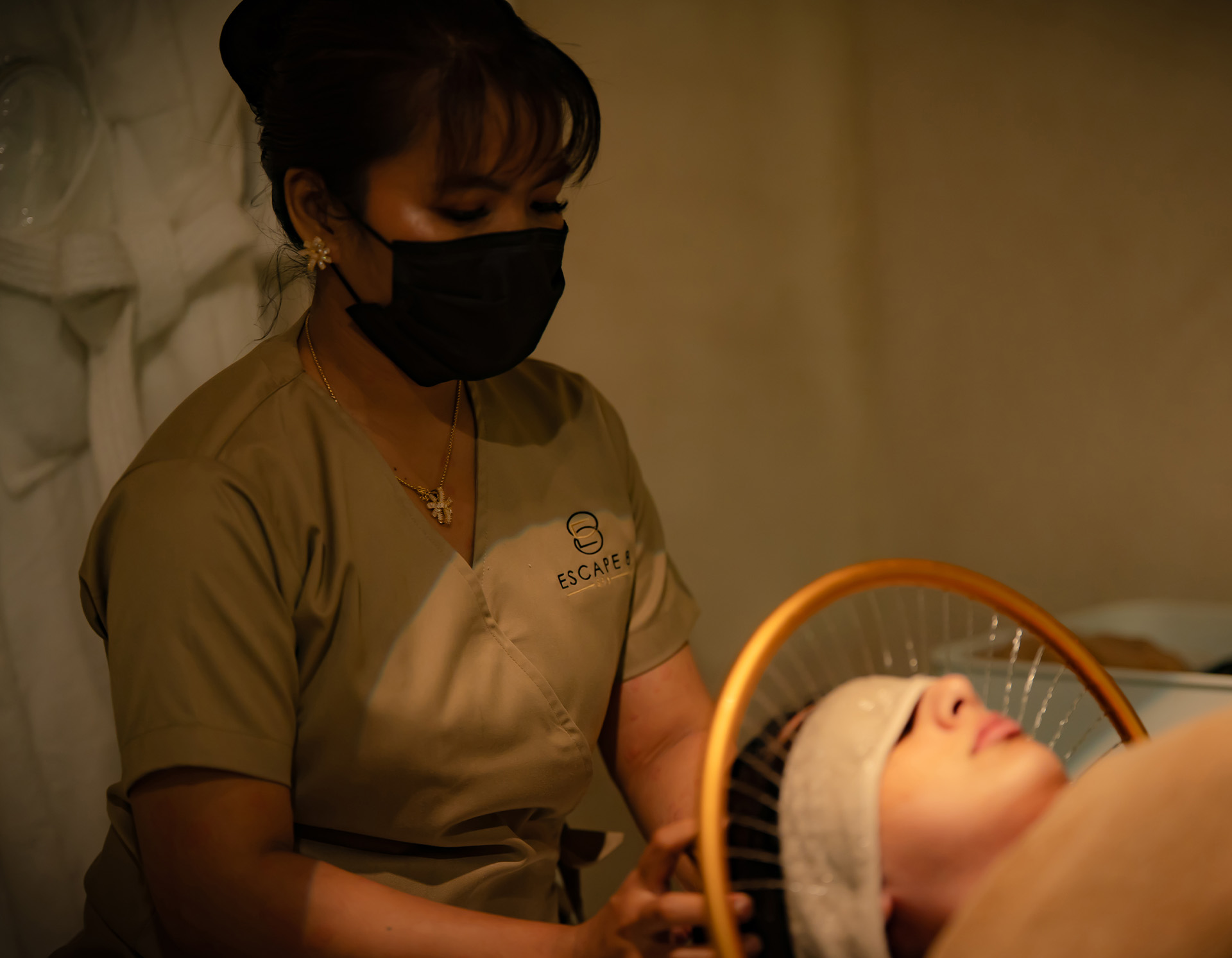 Gentle massage techniques applied to face and scalp to improve circulation and relax.